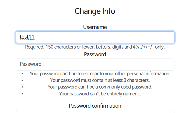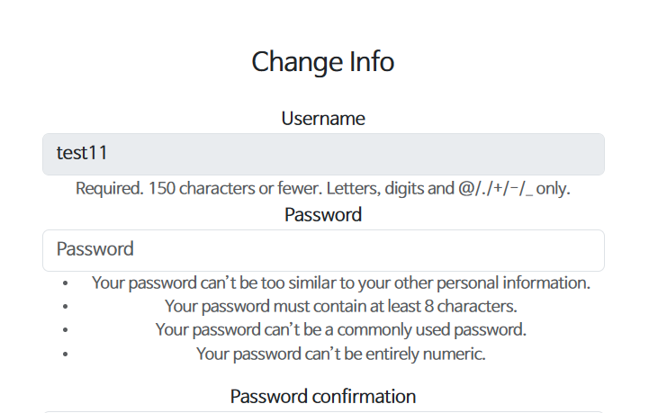 html ์์ฑํ ๋ usercreationform์ ๊ทธ๋๋ก ๋ฐ์์์ ์ฌ์ฉํ๋๋ username(id)๋ ์์ ๊ฐ๋ฅํด์ ์ด๋ฅผ ์์๋ฐ๋ ์๋ก์ด form ์์ฑ