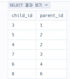 ์ ํ ์ด๋ธ์ parent_id์ id๋ฅผ ์กฐ๊ฑด์ผ๋ก ํ์ฌ ์๊ธฐ์ฐธ์กฐ๋ฅผ ํ๋ ๊ตฌ๋ฌธ์ ์๋์ ๊ฐ์ด ์์ฑํ ์ ์๋ค.
